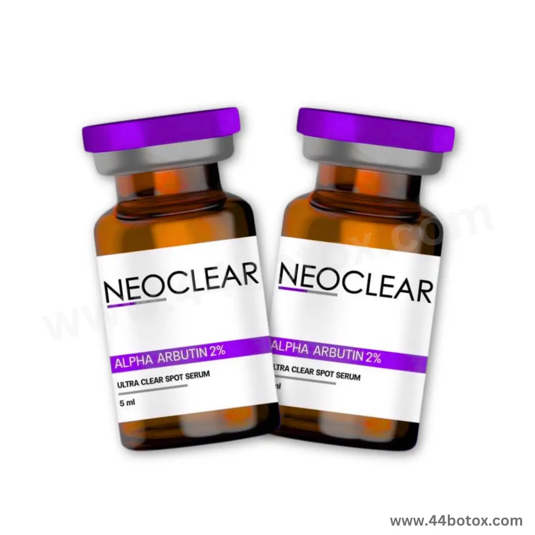neoclear คือไอเทมดูแลผิวสุดปังจากยุโรป ที่มีส่วนผสมหลักของ alpha arbutinซึ่งเป็นสารสกัดจากธรรมชาติที่ทำหน้าที่ในการยับยั้งการสร้างเม็ดสีเมลานิน นับเป็นเมโสหน้าใสที่ช่วยลดเลือนฝ้า, กระและจุดด่างดำบนผิวหน้าได้อย่างมีประสิทธิภาพ อีกทั้งยังช่วยยับยั้งการทำงานของ tyrosinase เอนไซม์สร้างเม็ดสีผิว ตัวการสำคัญที่เกี่ยวการเม็ดสีเมลานิน แค่ฉีดก็หยุดการทำงานและลดความหมองคล้ำของผิวได้ ทำให้ผิวของคุณจะมีความสว่างกระจ่างใสอย่างเป็นธรรมชาติ ฝ้า, กระและจุดด่างดำต่างๆ ก็จะไม่มากวนใจอีกต่อไป